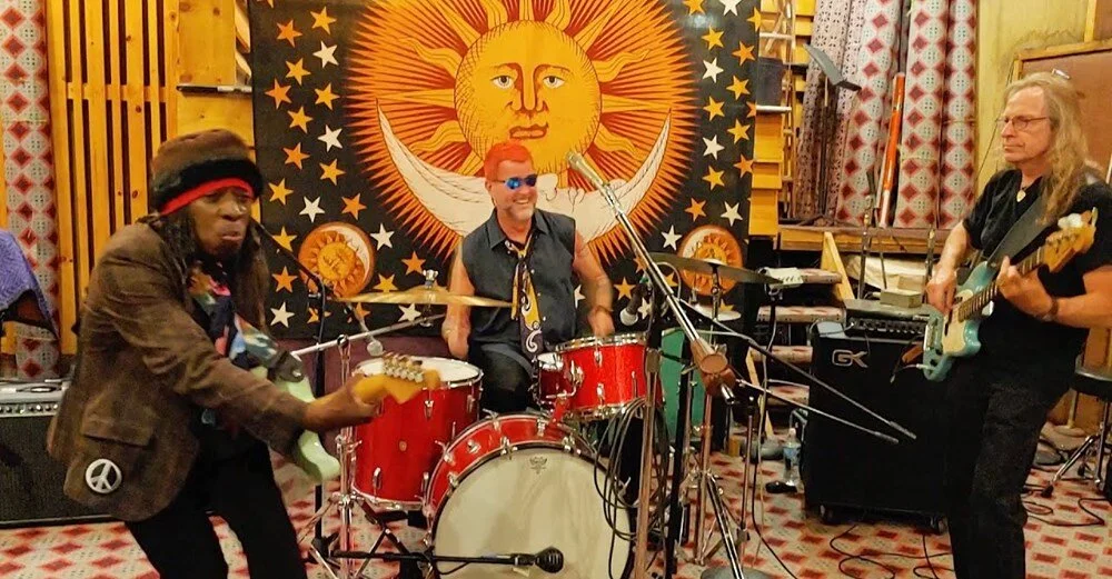 Willie, Steven Day Carter, and Chuck Birchfield rocking out at Eastman Studio.